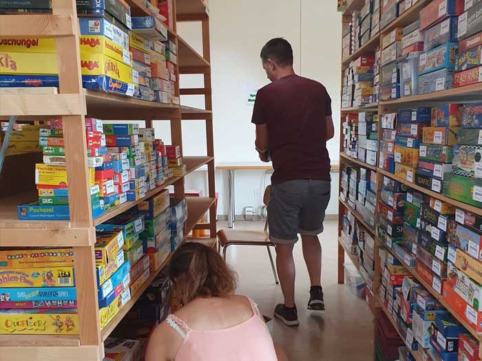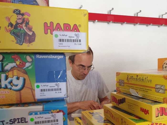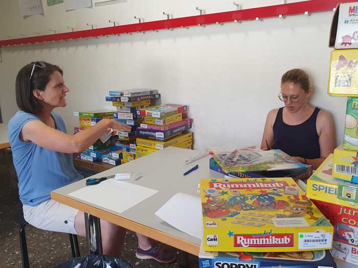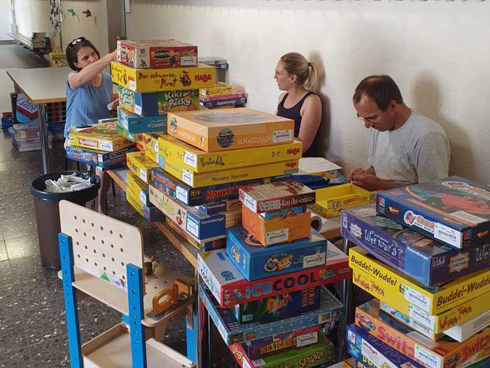 Am Samstag, 21. Mai, trafen sich die Ludothekmitarbeiter in der Ludothek und führten während rund 7 Stunden gemeinsam das Inventar durch. Es wurden insgesamt rund 2400 Spiele kontrolliert, neu beklebt, aussortiert oder erneuert. Rund 10 Mitarbeiter arbeiteten fleissig und mit viel Eland. Damit der Elan auch nicht nachliess, wurden Pizzas bestellt und somit war die Energie wieder da. Gleichzeitig wurde die Ludothek sauber geputzt und danach schön ordentlich neu eingeräumt.