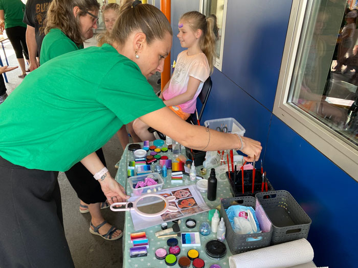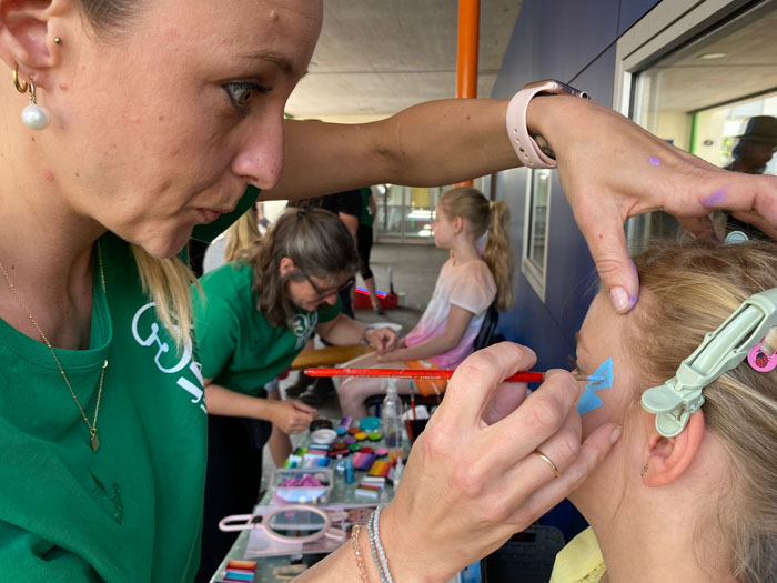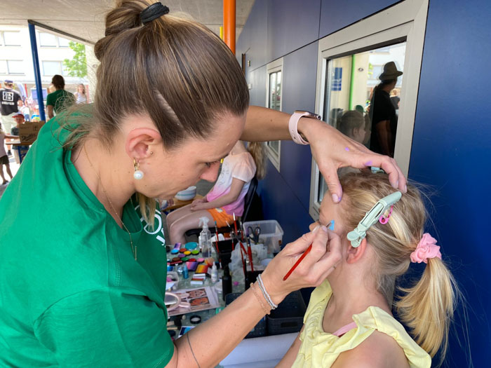 Zudem durften wir dieses Jahr die Besucher mit unserem neuen Angebot erfreuen. Zum ersten Mal hat die Ludothek das (Kinder)Schminken angeboten. Über 50 Kinder und auch Erwachsene liessen sich von Ceren Renggli und Luzia Bracher schminken. Die Anzahl der freilaufenden Einhörner und Schmetterlinge stieg während den ersten beiden Chilbi Tagen rasant an. Aber auch zahme Tiger wurden auch dem Chilbigelände gesichtet.
